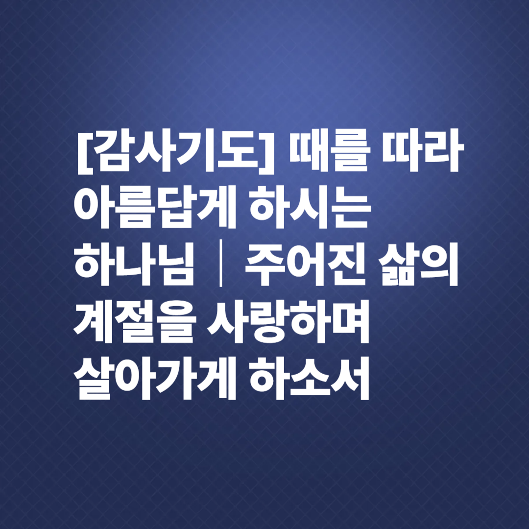 🙏 지금 이 순간이 가장 아름다운 때임을 알고 감사하면 살게 하소서