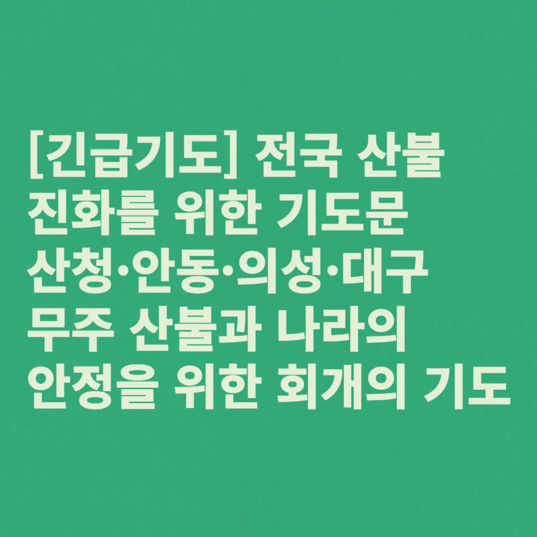 주께서 허락하신 자연 가운데 지금 산청, 안동, 의성, 대구, 무주 등 여러 지역에서 산불이 일어나고 있습니다.