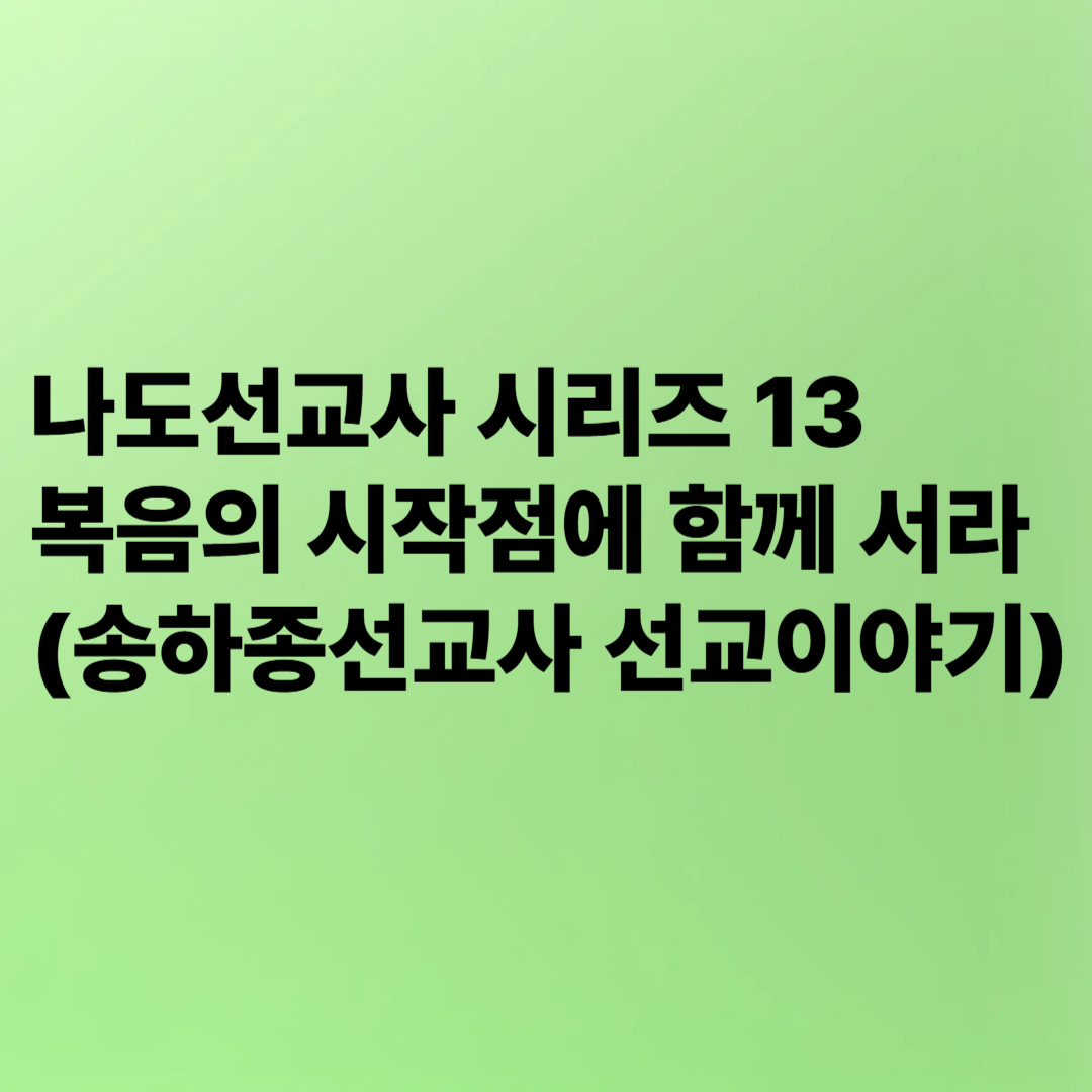 | 나도선교사 시리즈 11 | 선교는 말씀에서 시작된다 (송하종선교사 선교이야기) (1) | 2025.04.11 |