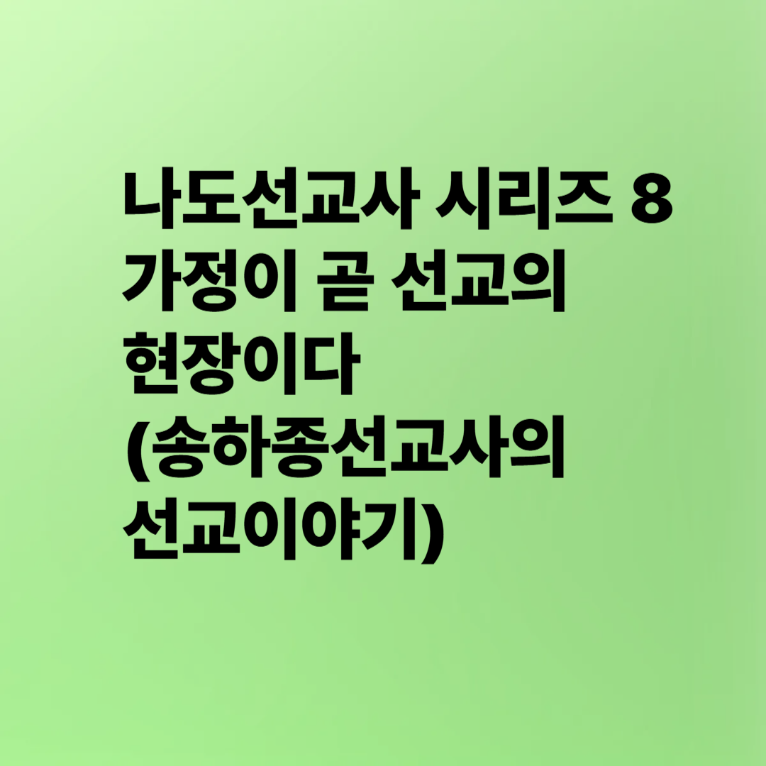| 나도선교사 시리즈 9 | 내 일터가 하나님 나라의 전초기지가 된다 (송하종선교사의 선교이야기) (0) | 2025.04.09 |