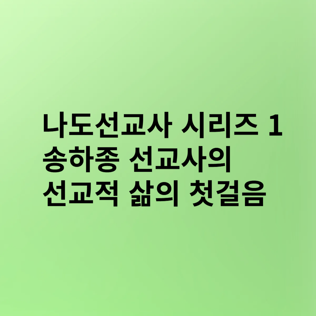 | 세계 열방을 기도로 품으라 / 나도선교사 시리즈 4 | 기도로 시작되는 선교의 길 (송하종선교사의 선교이야기) (0) | 2025.04.04 |
