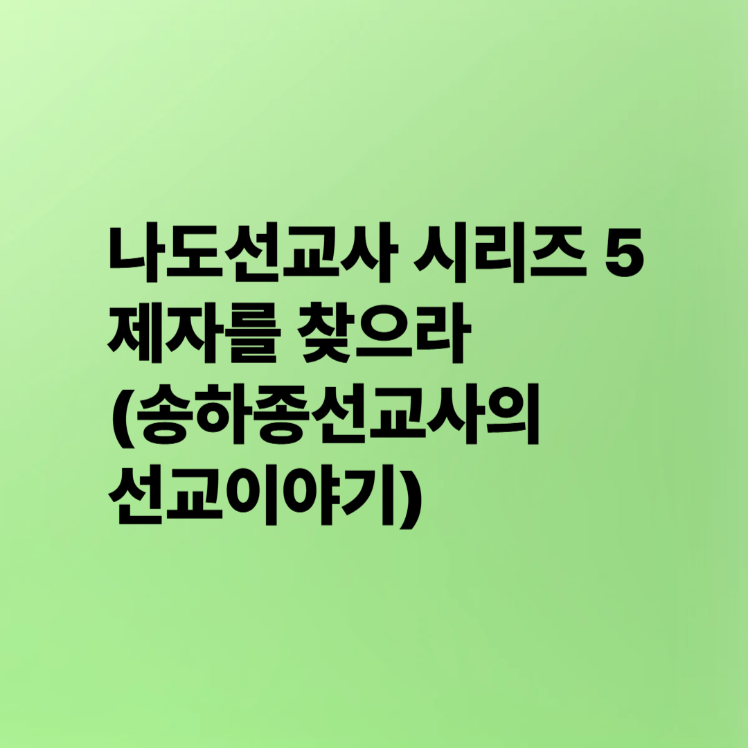 선교는 예수님의 제자를 찾는 것, 내가 먼저 주님의 제자가 되자 / 나도선교사 시리즈 5 (송하종선교사의 선교이야기)