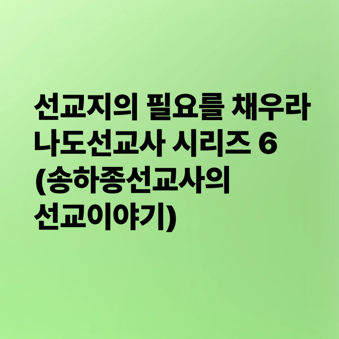 | 나도선교사 시리즈 8 | 가정이 곧 선교의 현장이다 (송하종선교사의 선교이야기) (0) | 2025.04.08 |