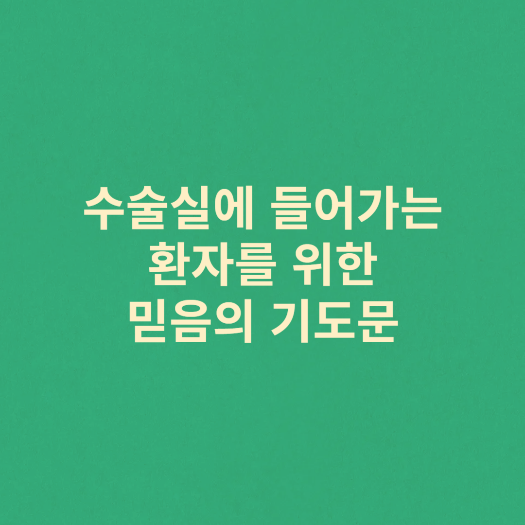 오늘 수술을 앞두고 두렵고 떨리는 마음으로 주님 앞에 나아갑니다. 나의 생명과 모든 순간이 오직 주님의 손 안에 있음을 믿으며 무릎을 꿇습니다.