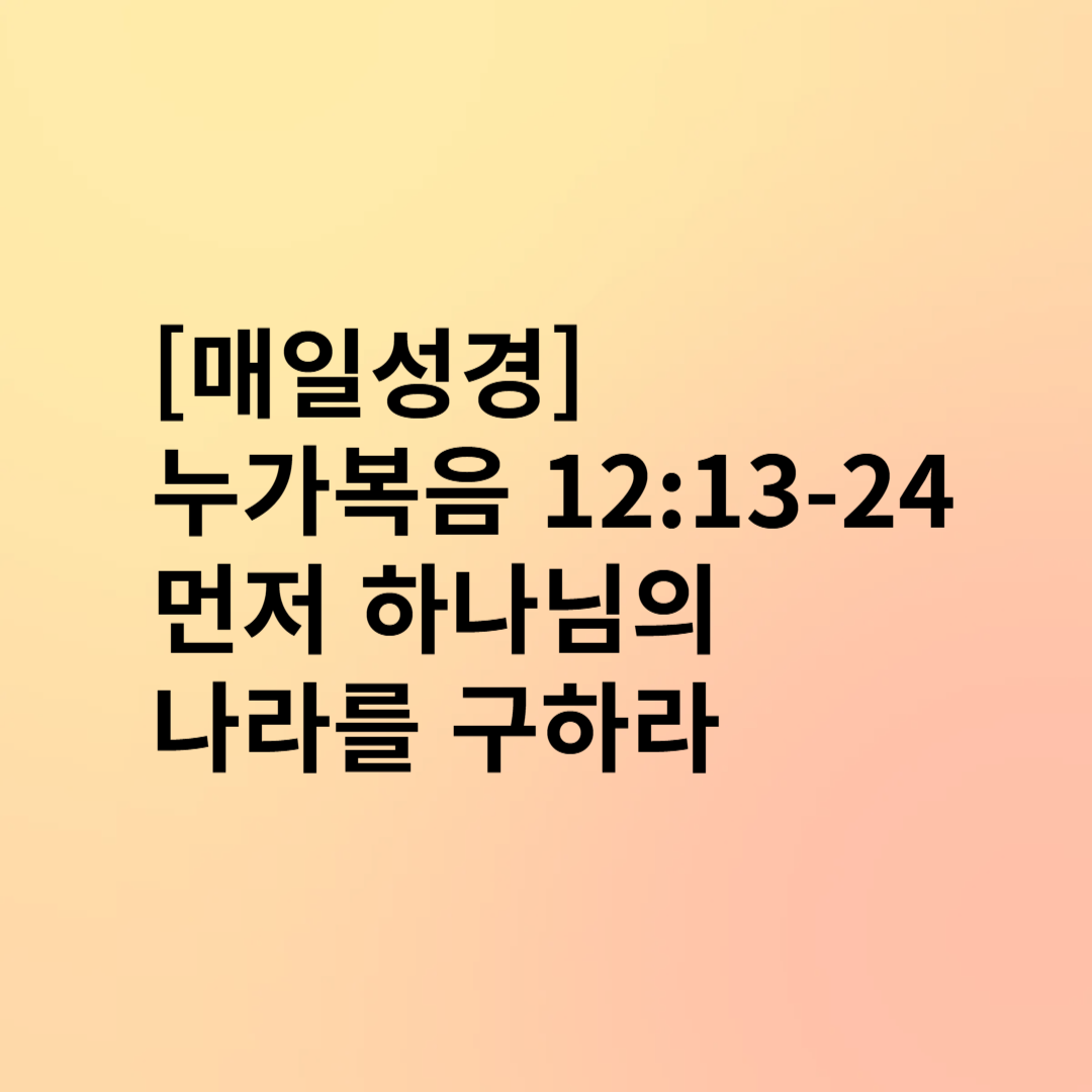 오늘 묵상할 본문은 누가복음 12:13-34입니다. 이 말씀은 크게 두 부분으로 나뉩니다.