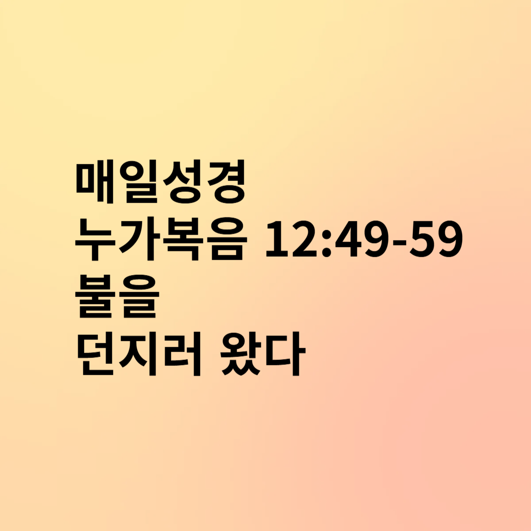 예수님께서는 이 땅에 "불"을 던지러 오셨다고 말씀하십니다. 이는 심판과 정결케 하심을 의미하며, 동시에 복음이 세상에서 갈등과 분쟁을 일으킬 것임을 가르치십니다. 예수님은 세상의 평화를 보장하는 것이 아니라, 진리를 통해 사람들을 나누시며, 각자가 신앙에 대해 결단하도록 요구하십니다.