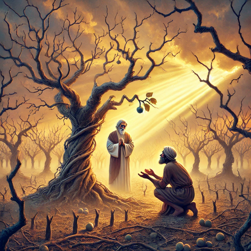 - 주인은 열매 없는 나무를 찍어버리려 하지만, 포도원지기는 한 해 더 기회를 달라며 간청합니다.