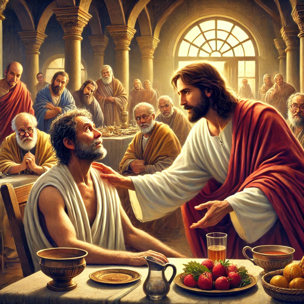 - 잔치에서 높은 자리에 앉으려는 사람들을 보시고, 겸손에 대한 교훈을 주십니다.