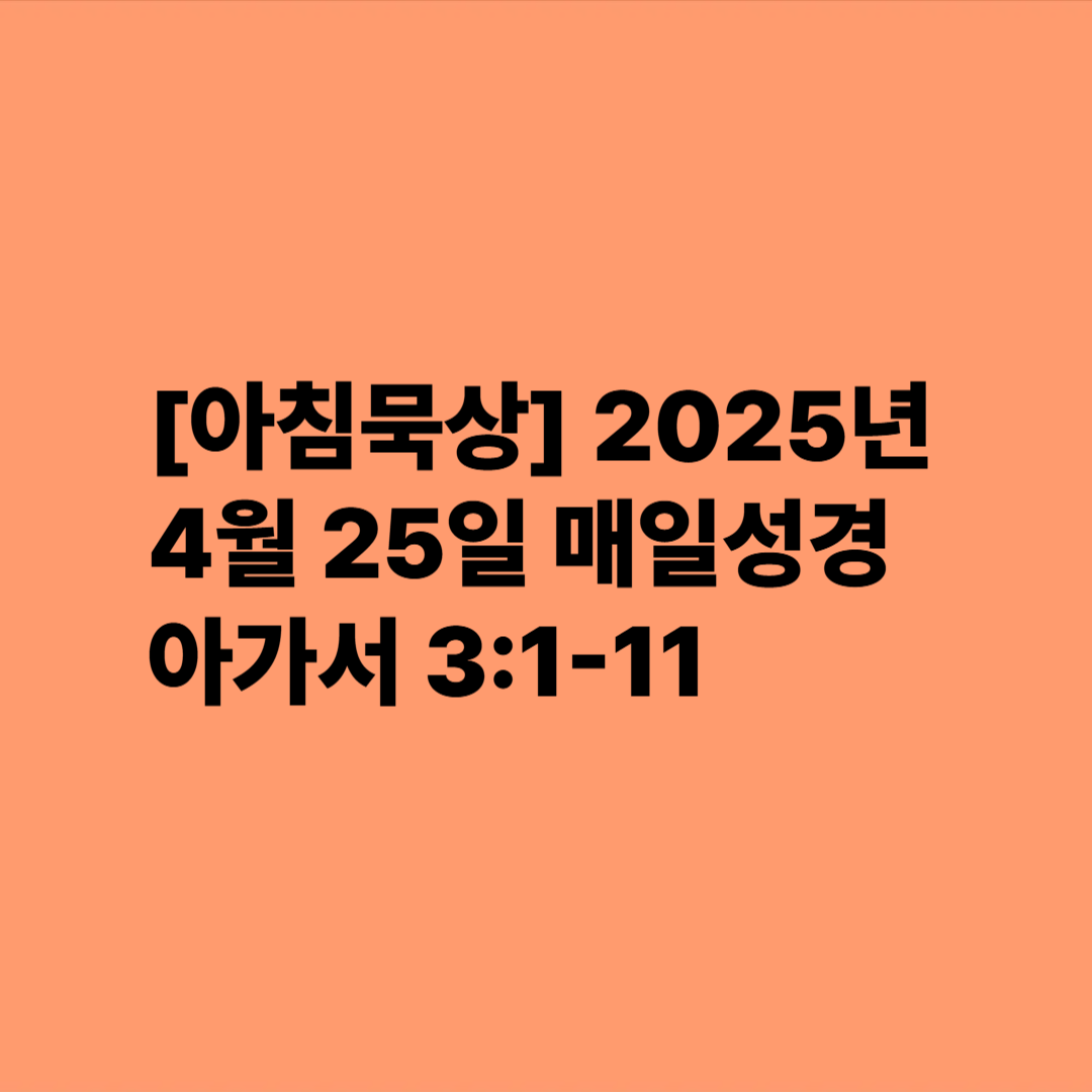 | [아침묵상] 2025년 4월 26일 매일성경 아가서 4:1-5:1 사랑에 눈 먼 자의 고백 (0) | 2025.04.26 |