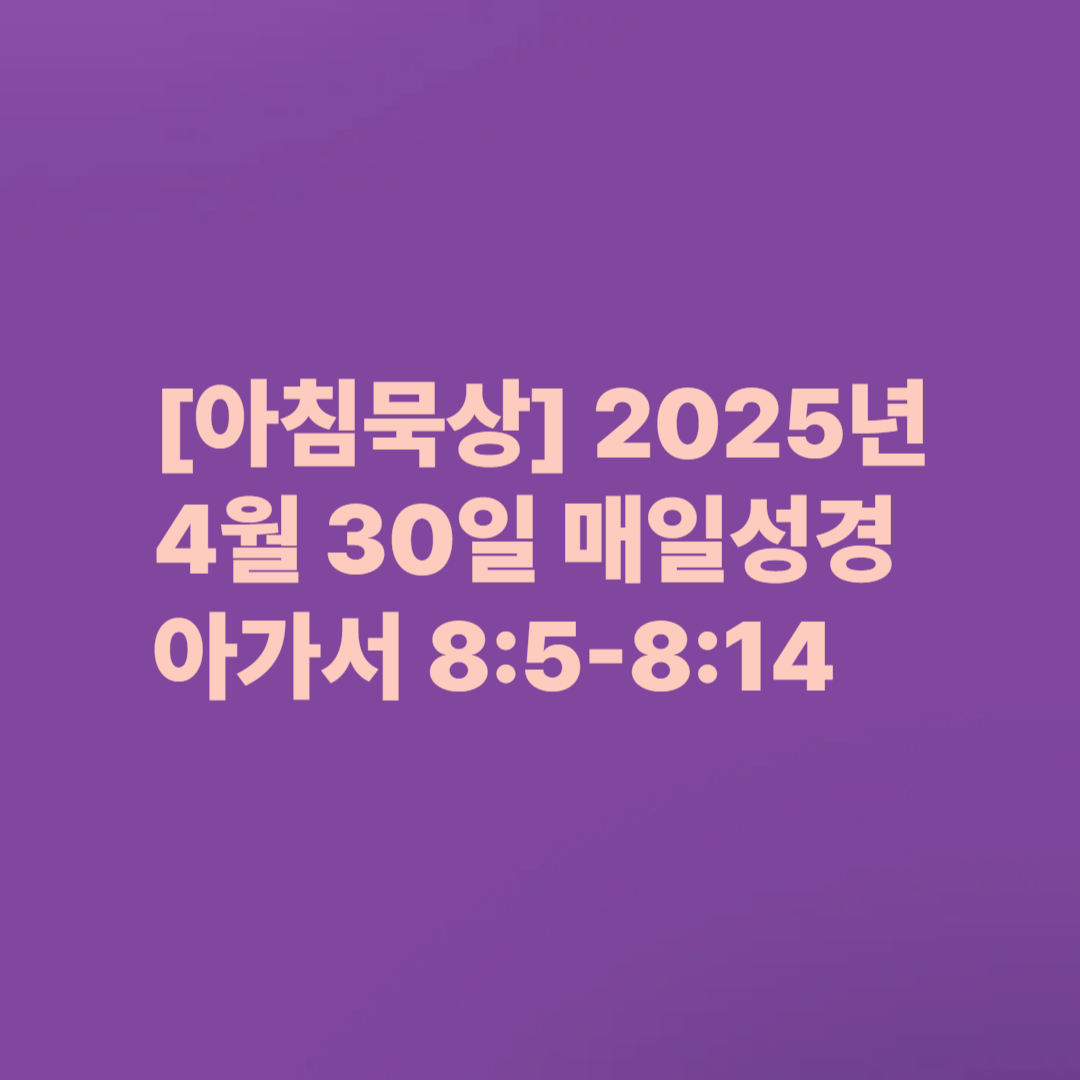 | [아침묵상] 2025년 5월 2일 매일성경 시편 119:17-32 나를 살게 하시는 말씀의 능력 (2) | 2025.05.02 |