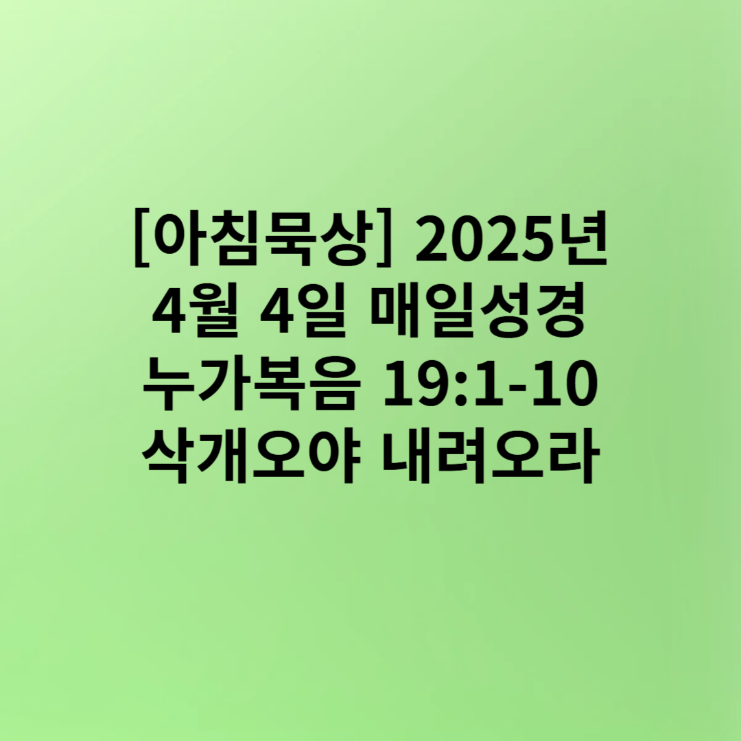 | [아침묵상] 2025년 4월 5일 매일성경 누가복음 19:11-27 열 므나 비유 (0) | 2025.04.05 |