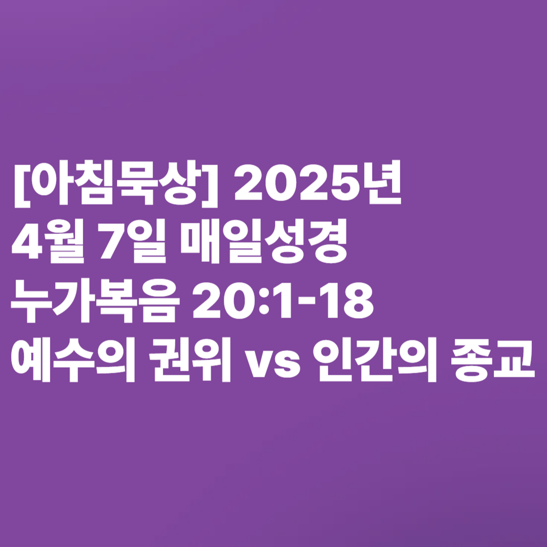 [아침묵상] 2025년 4월 7일 매일성경 누가복음 20:1-18 예수의 권위 vs 인간의 종교: 포도원 농부 비유에 담긴 경고