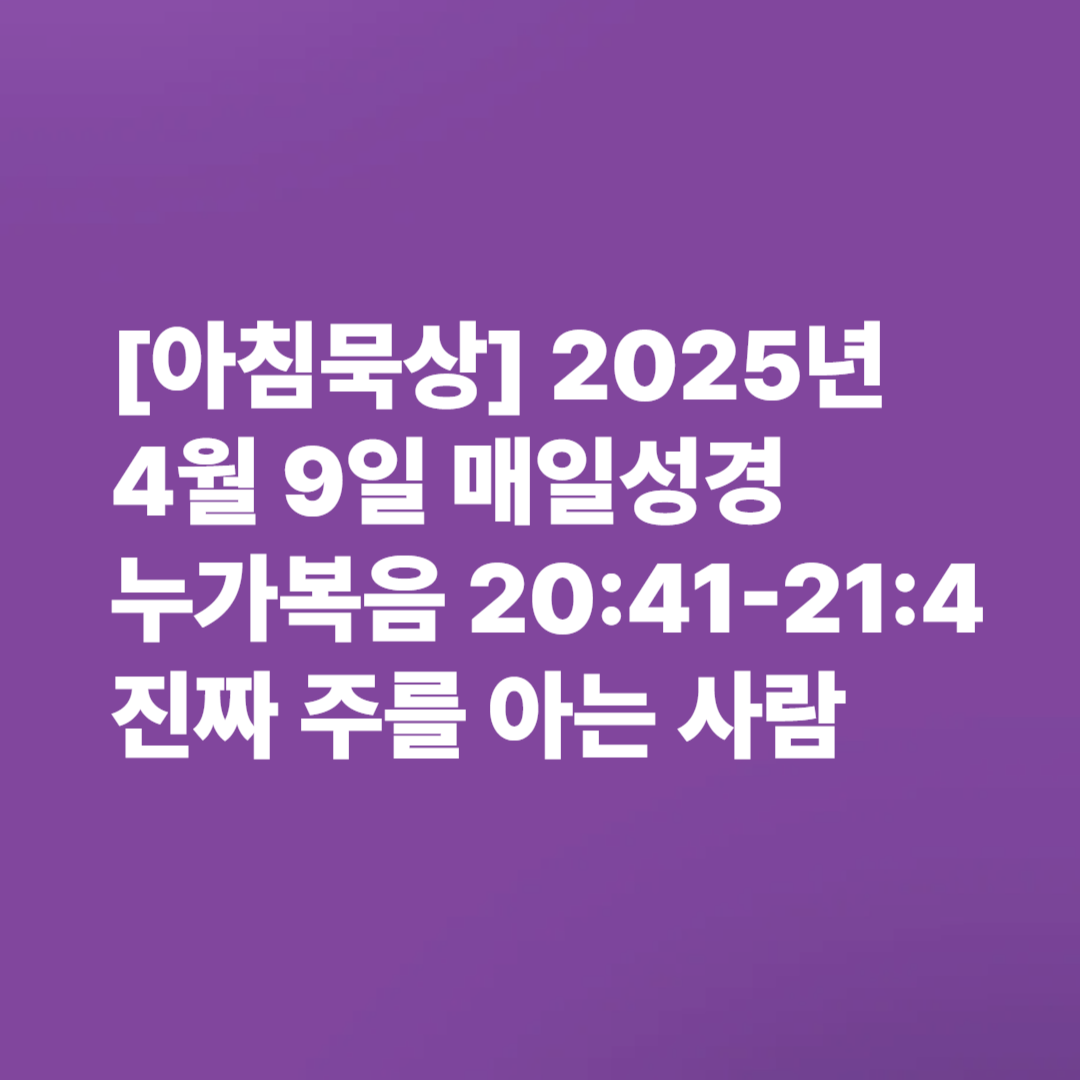| [아침묵상] 2025년 4월 7일 매일성경 누가복음 20:1-18 예수의 권위 vs 인간의 종교: 포도원 농부 비유에 담긴 경고 (0) | 2025.04.07 |