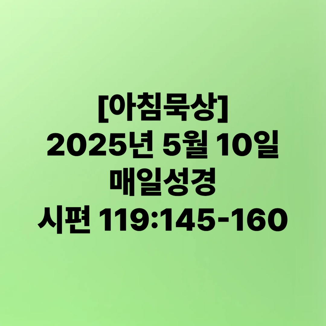 [아침묵상] 2025년 5월 10일 매일성경 119:145-160(개역개정) 나를 살리소서 (송병민의 말씀산책)