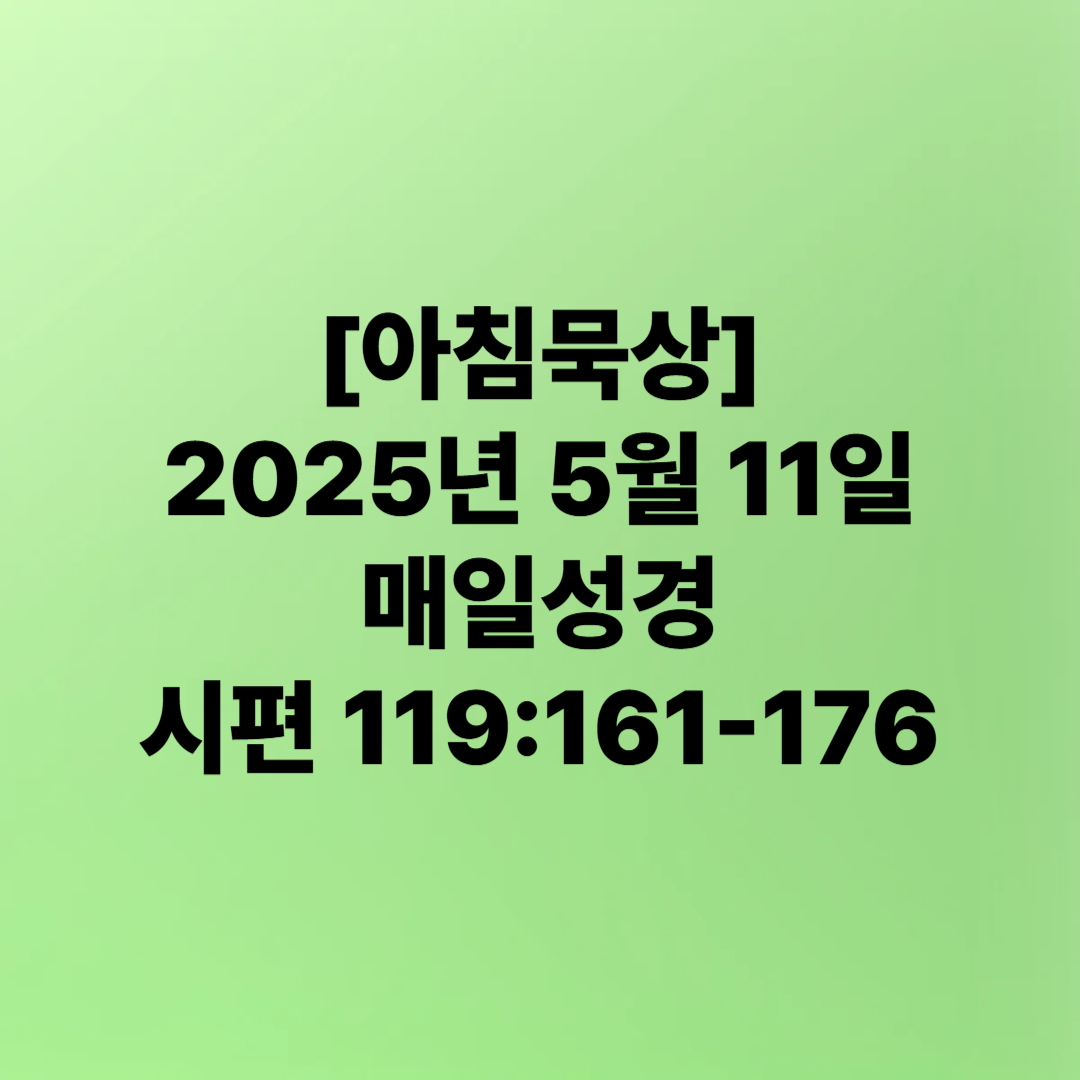 [아침묵상] 2025년 5월 11일 매일성경 시편119:161-176 하나님의 말씀은 나의 노래의 이유입니다 (송병민의 말씀산책)