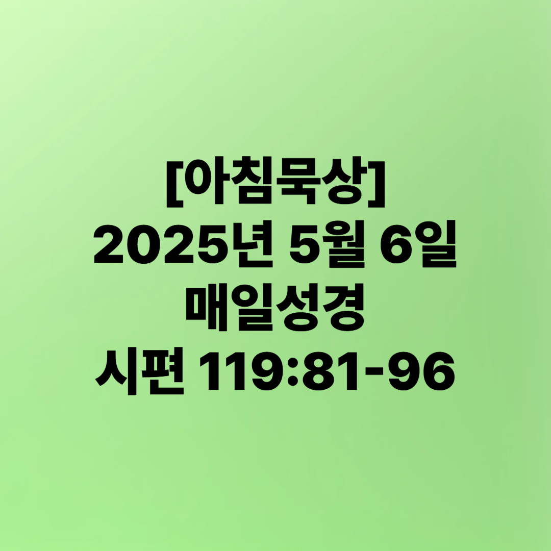 [아침묵상] 2025년 5월 6일 매일성경 시편119:81-96 (개역개정) 영원하고 완전한 말씀