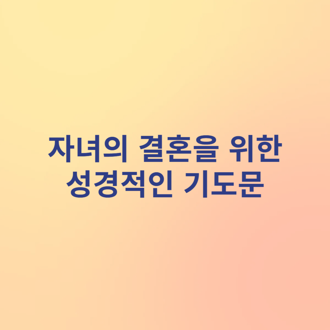 이 시간 주님 앞에 사랑하는 자녀의 결혼 문제를 놓고 간절히 기도합니다. 주님께서 "사람이 부모를 떠나 그의 아내와 합하여 둘이 한 몸을 이룰지로다"(창세기 2:24) 말씀하시고 결혼이라는 거룩하고 신비한 관계를 허락하신 은혜에 감사드립니다.