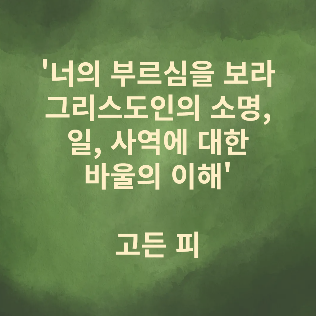 고든 피는 바울의 서신을 깊이 분석하며, 소명은 단순한 직업이 아니라 **"하나님의 부르심을 따라 살아가는 삶"**이라는 점을 강조한다.