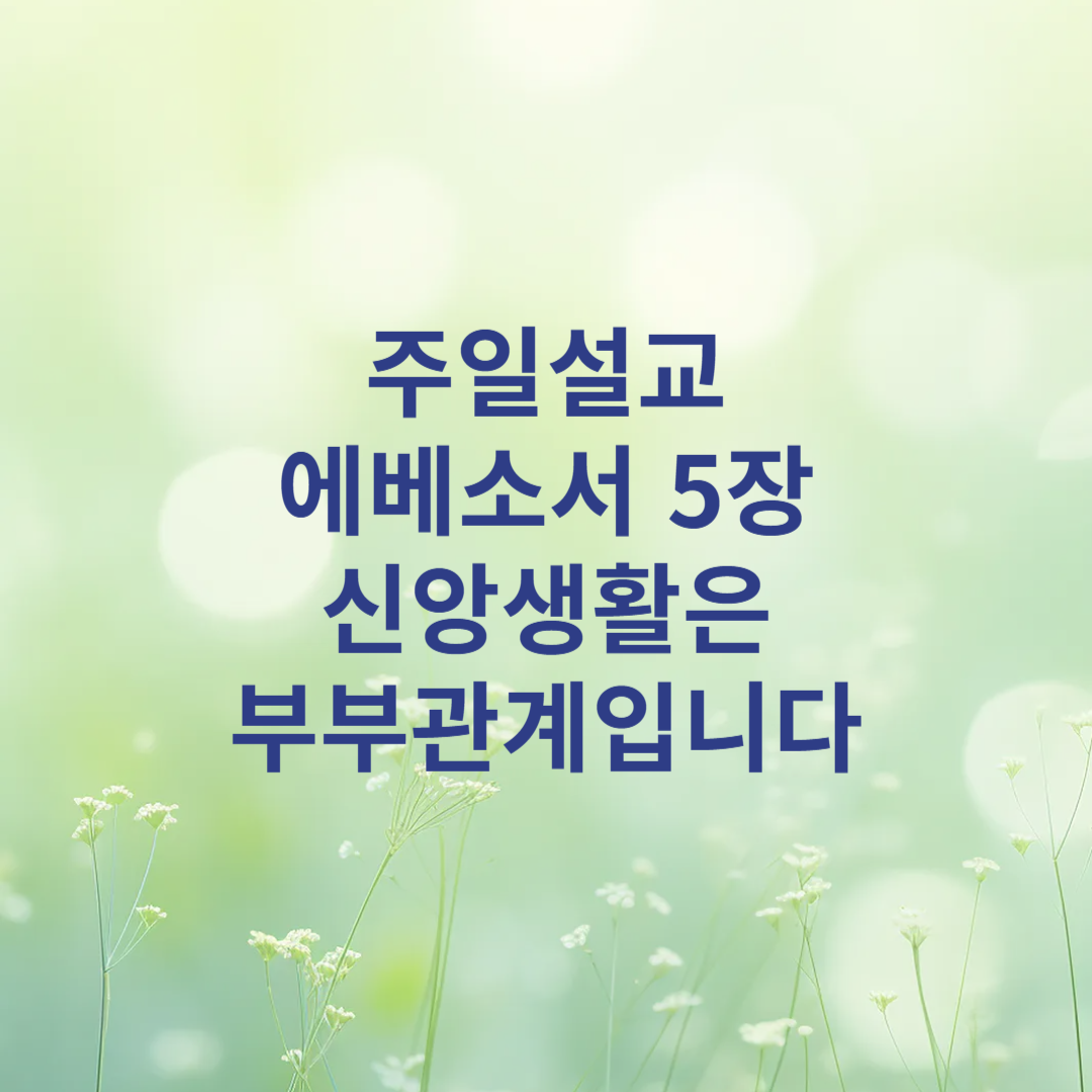 제목 설명 신앙생활이 가족관계 부부관계라 함은 신앙생활이 실제인 것이지 피상적인 것이 아니라는 말입니다. 하나님이 눈에 보이지 않아 신앙생활을 형식적으로 하기 쉽습니다. 그러나 신앙생활은 결코 뜬구름 잡는 것이 아닙니다. 에베소서 5장은 그것을 말하고 싶어 합니다. 하나님도 이 부분을 말씀하기 원하십니다. 그래서 시작부터, 창세기 2장에서 부부의 관계로 하나님 나라 복음을 계시하십니다.
