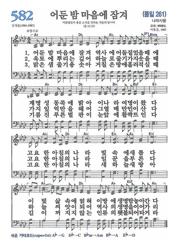장공(長空) 김재준 목사가 작사한 이 찬송은, 암울했던 한국 근현대사 속에서 교회가 민족의 등불이 되기를 간절히 염원하며 지어진 찬양입니다.