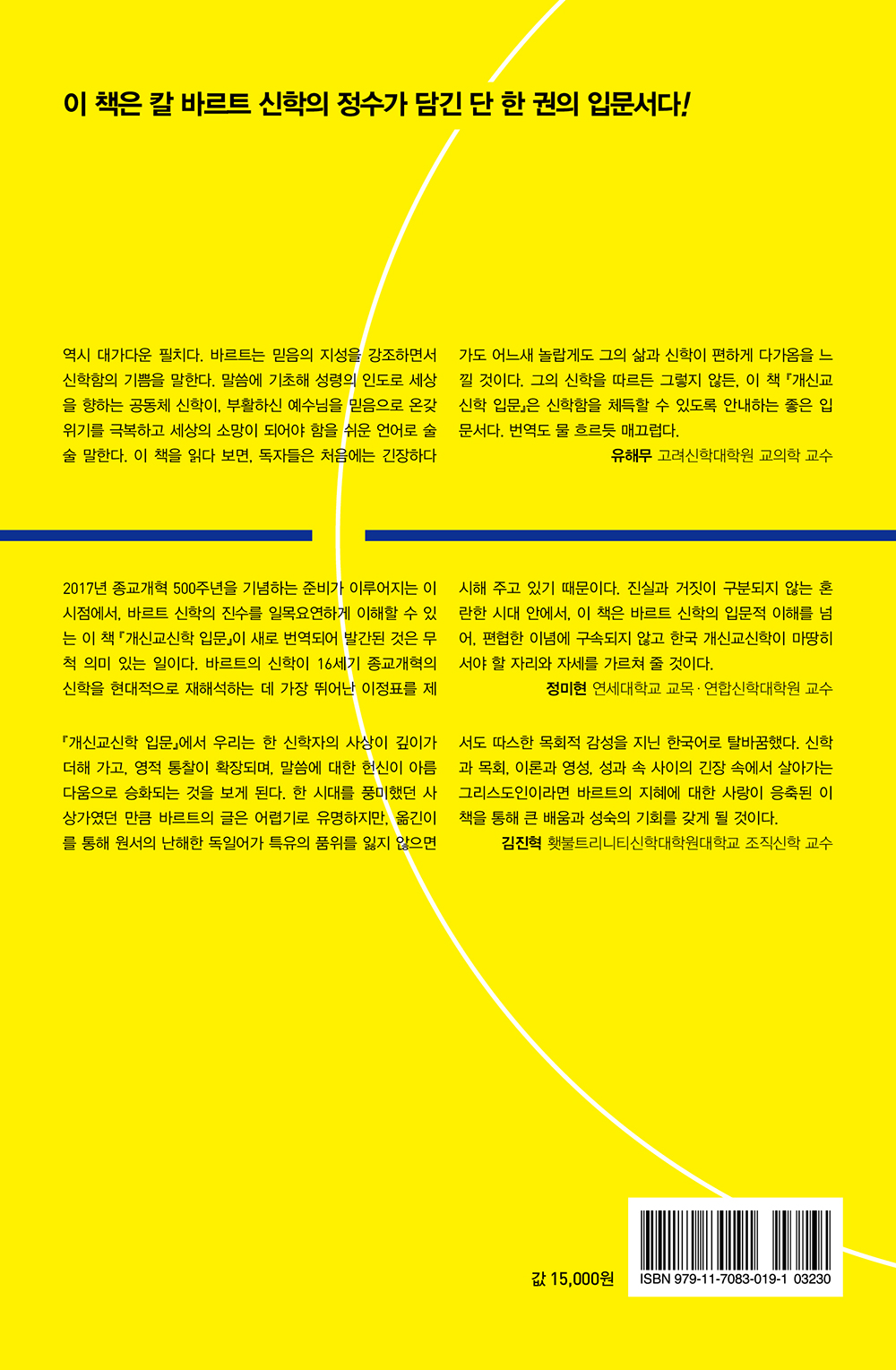 바르트의 신학적 작업은 그의 일생을 관통하는 방대한 『교회교의학』(Kirchliche Dogmatik, 총 14권)으로 집약되는데, 이 책은 20세기 신학의 대성당이라 불릴 만큼 크고 심오합니다. 그러나 『교회교의학』은 그 분량과 난해함 때문에 신학생과 목회자들이 쉽게 접근하기 어렵다는 한계가 있습니다.