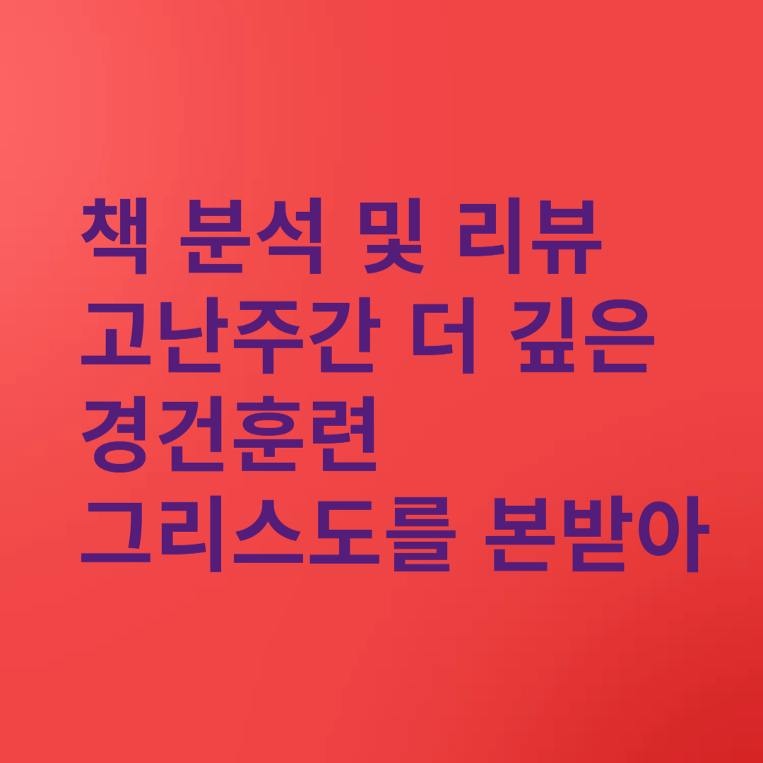 이 책은 단순히 ‘경건한 삶이 필요하다’라고 말하는 것이 아니라, 구체적으로 어떻게 훈련할 것인가?에 대한 실질적인 가이드를 제공한다.