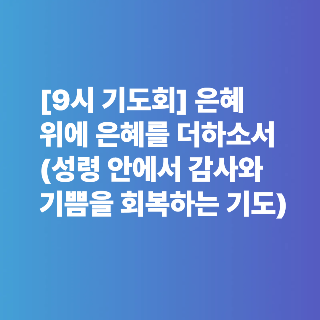 [9시 기도회] 복에 복을 더하소서 (성령과 말씀 안에서 참된 복을 누리는 기도) (0) | 2025.04.13 |